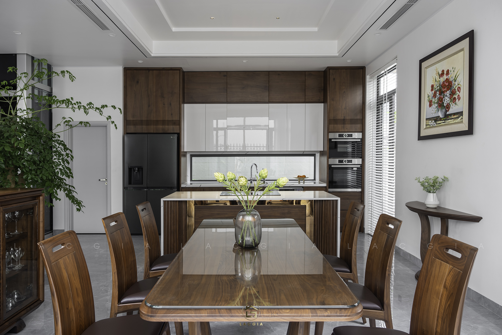 + Tên: Bàn ăn gỗ óc chó Amata hiện đại